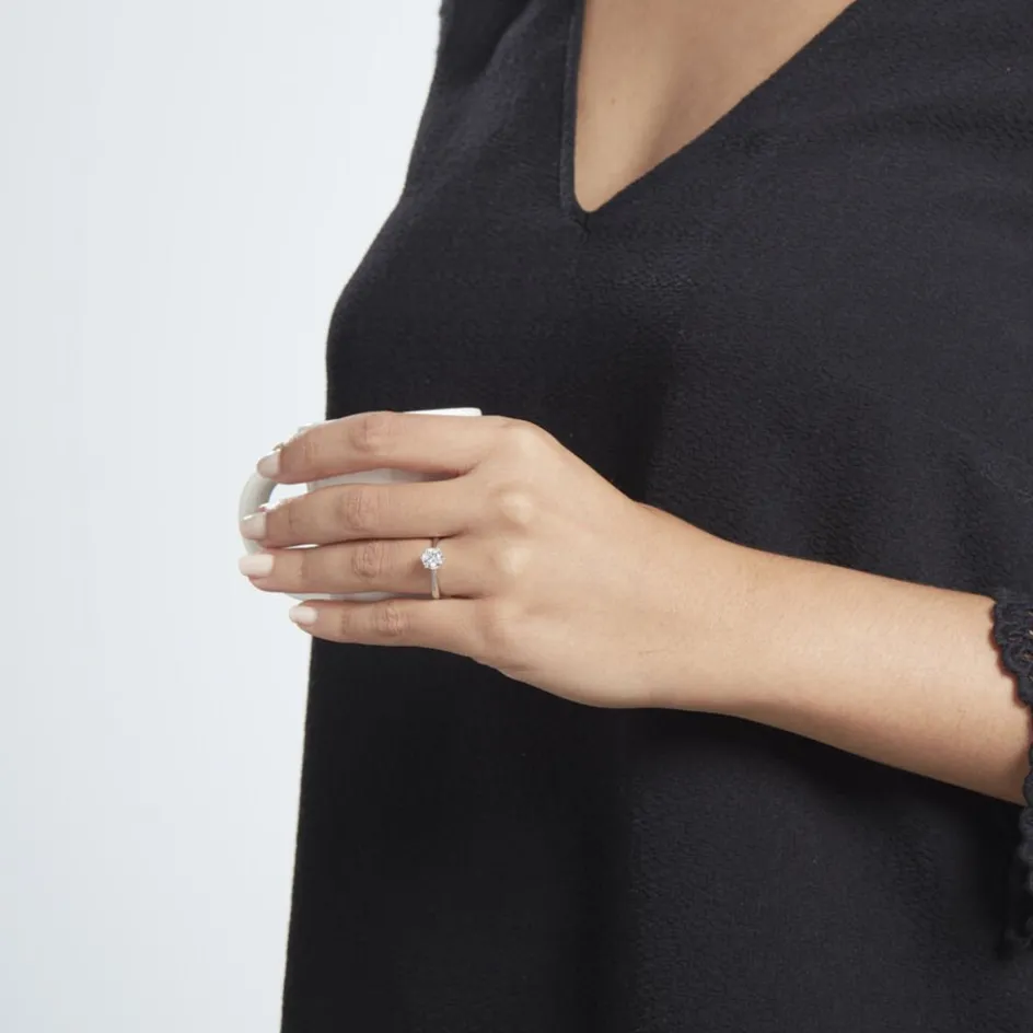 Solitaire Or Blanc 375/1000 6 Griffes Oxyde De Zirconium Rond