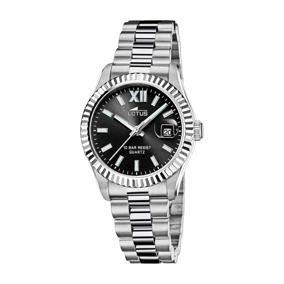 Montre Lotus Freedom Collection Acier Argente Ronde Quartz 32.5mm Lunette Dentelee Fond Noir Bracelet Acier Argente 18930/6