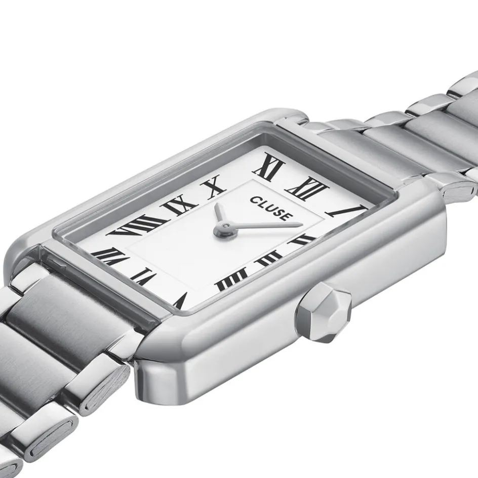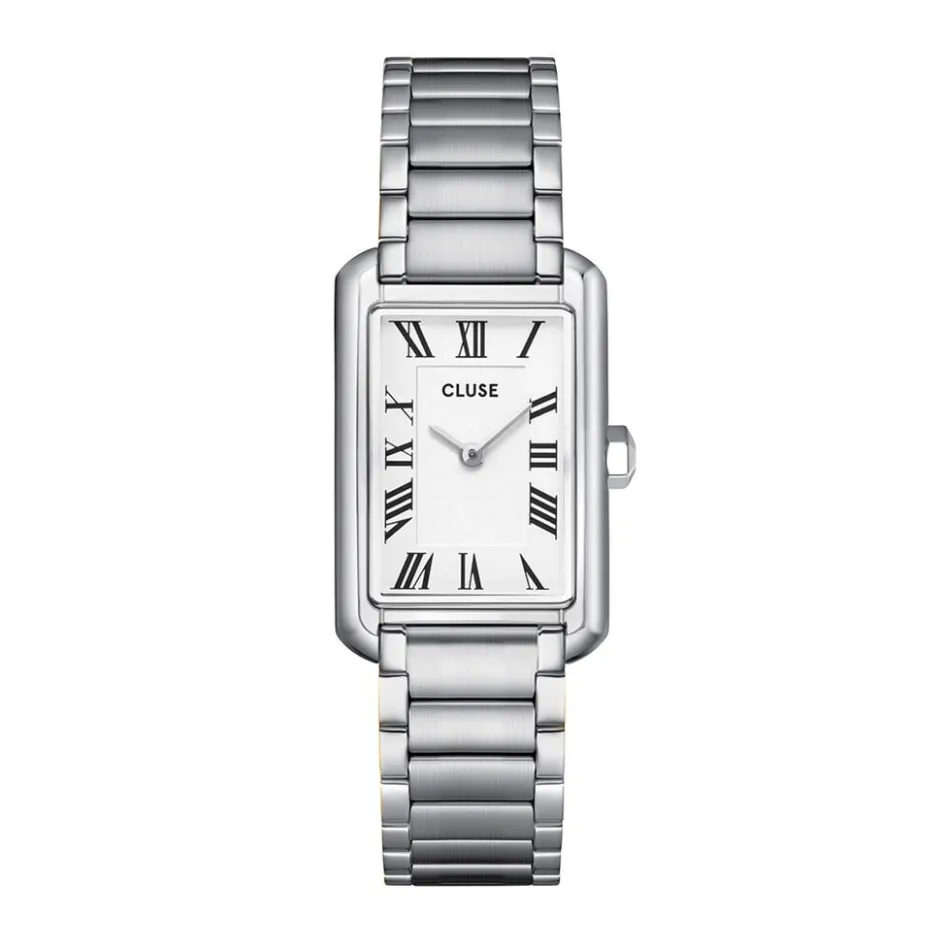Montre Cluse Belissena Acier Argenté Rectangulaire Quartz 32x21mm Fond Blanc Bracelet Acier Inoxydable Argenté Cw15002