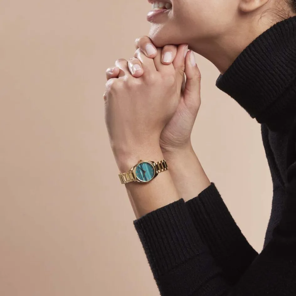 Montre Cluse Feroce Mini Acier Doré Ronde Quartz 25mm Fond Vert Bracelet Acier Doré Cw11702