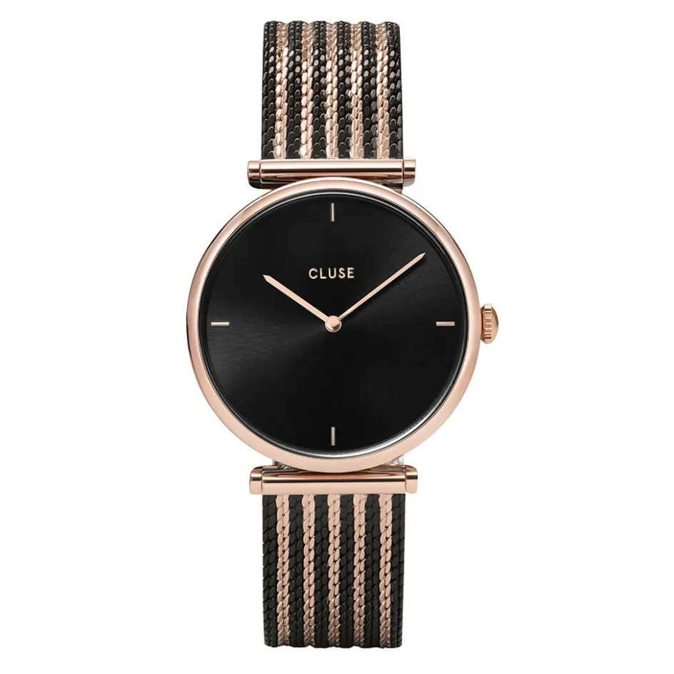 Montre Cluse Triomphe Acier Dore Ronde Quartz 33mm Fond Noir Bracelet Acier Rose Cw0101208005