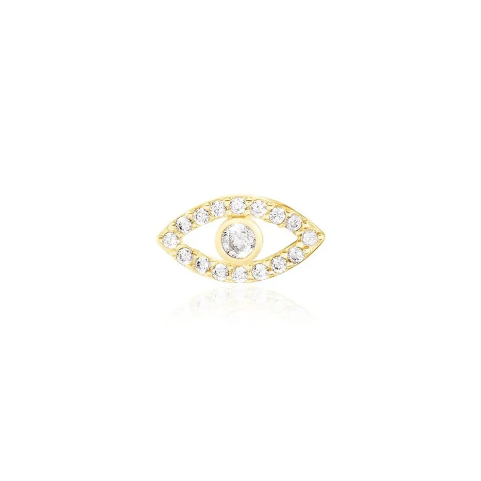 Boucle D’oreille Puce Unitaire Or Jaune 375/1000 Oeil Oxydes De Zirconium