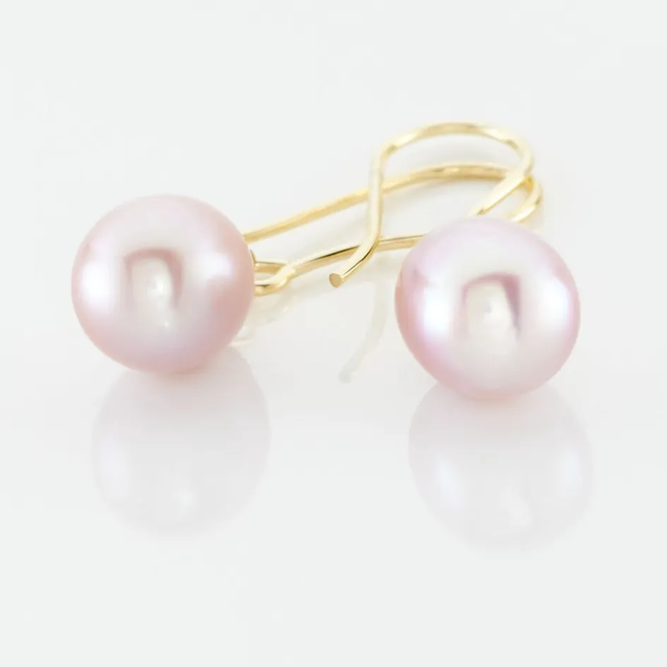 Boucles D’oreilles Pendantes Or Jaune 375/1000 Perles De Culture Rose 6.5/7mm