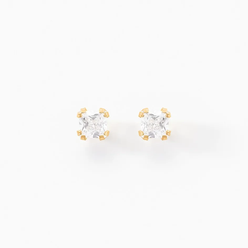 Boucles D’oreilles Puces Or Jaune 750/1000 Oxyde De Zirconium Carres 3mm
