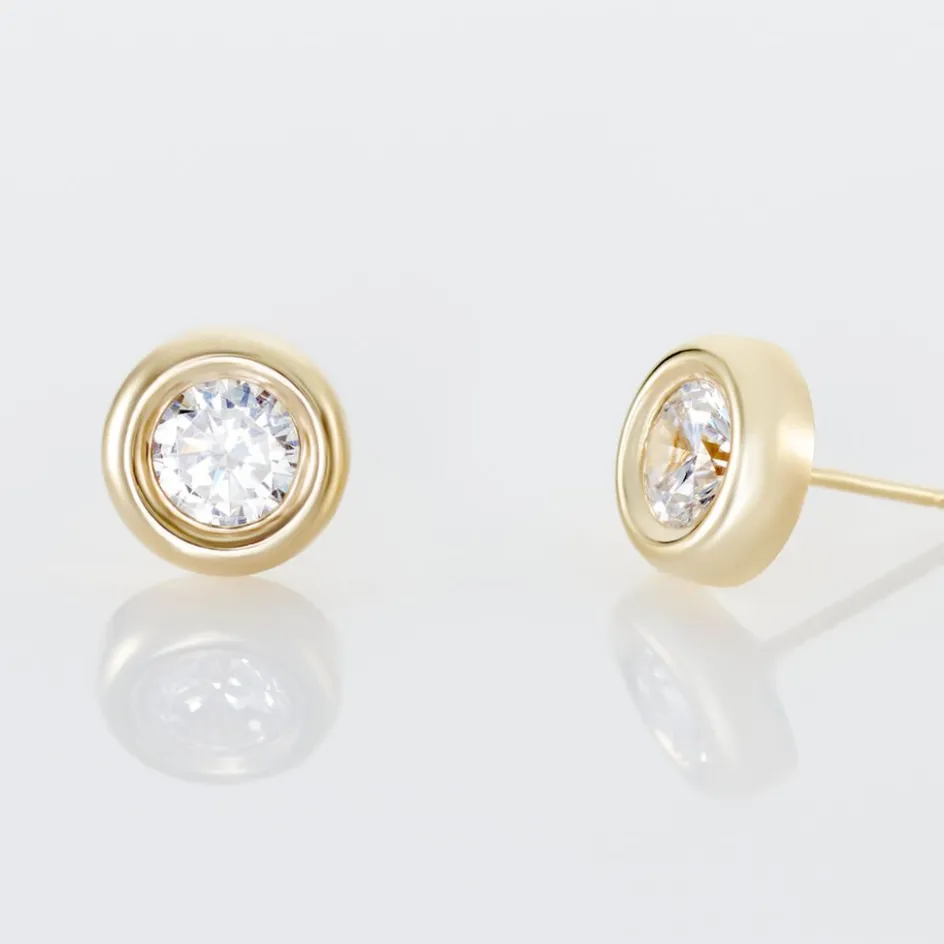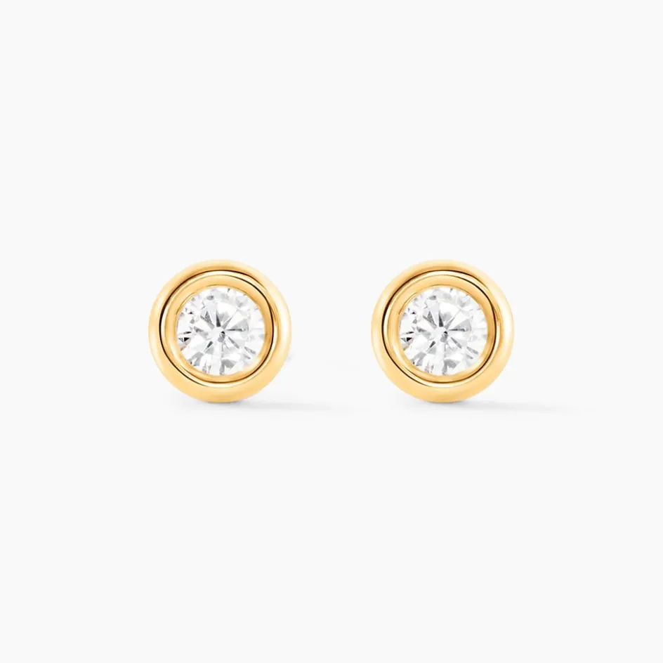 Boucles D’oreilles Or Jaune 375/1000 Oxyde De Zirconium Serti Pneu 5mm