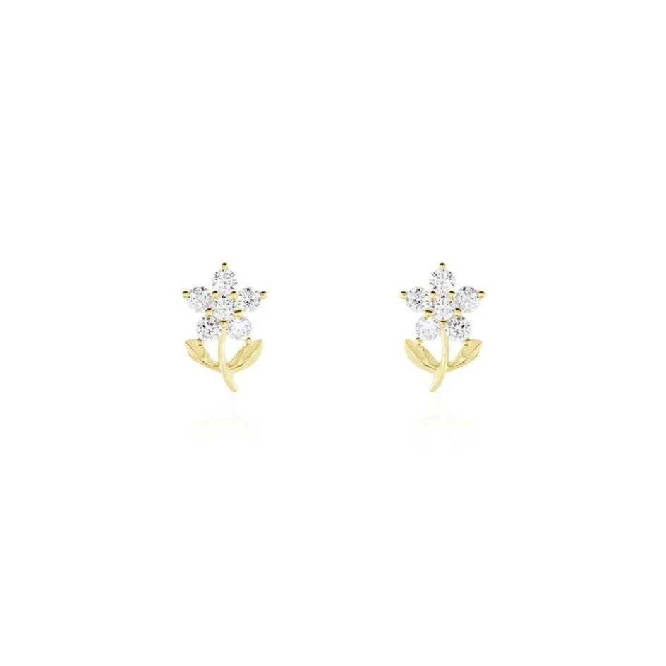 Boucles D’oreilles Or Jaune 375/1000 Formes Fleurs Oxydes De Zirconium
