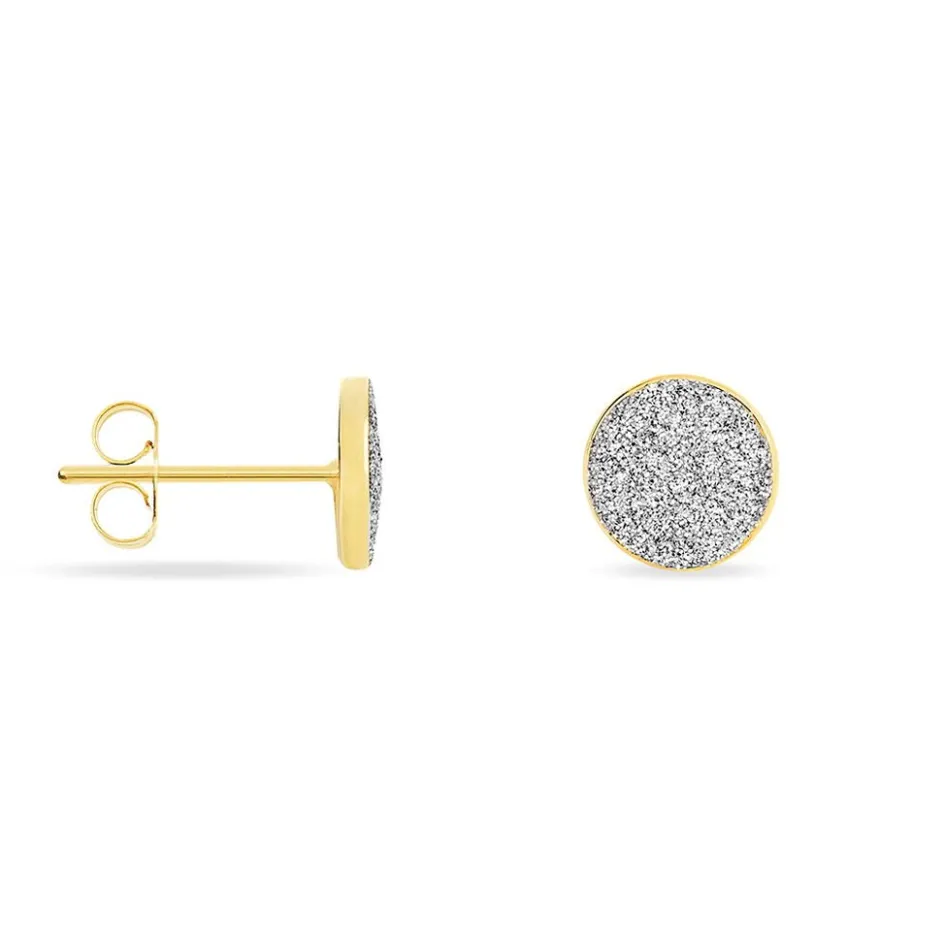 Boucles D’oreilles Puces Or Jaune 375/1000 Pastilles Glitter Argente