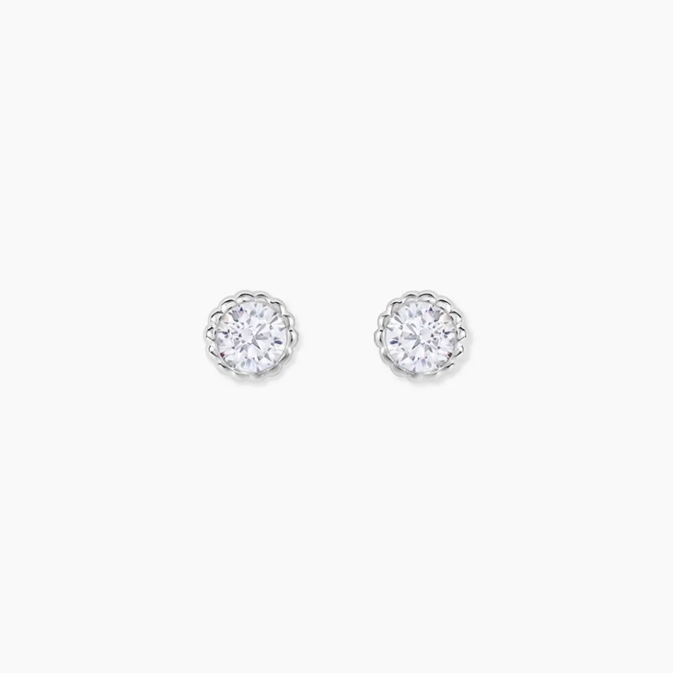 Boucles D’oreilles Or Blanc 375/1000 Puces Oxydes De Zirconium Serti Clos