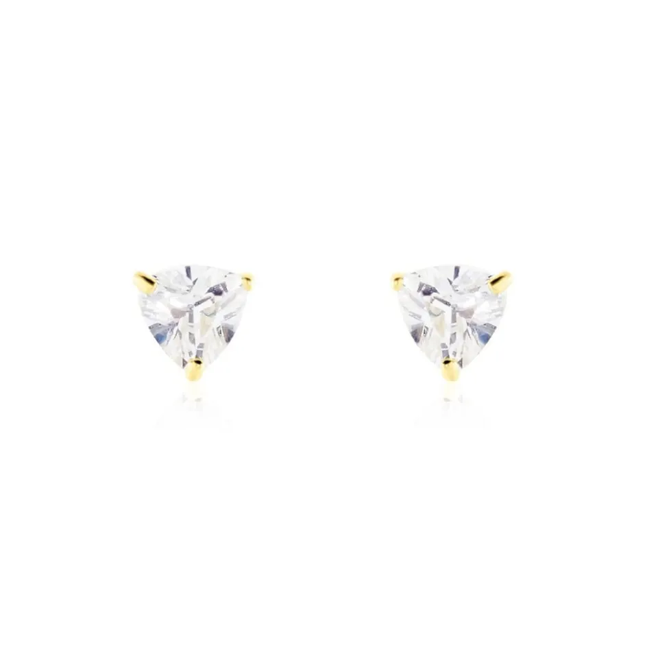 Boucles D’oreilles Puces Or Jaune 375/1000 Triangles Serti Griffes Oxydes De Zirconium 5x5mm