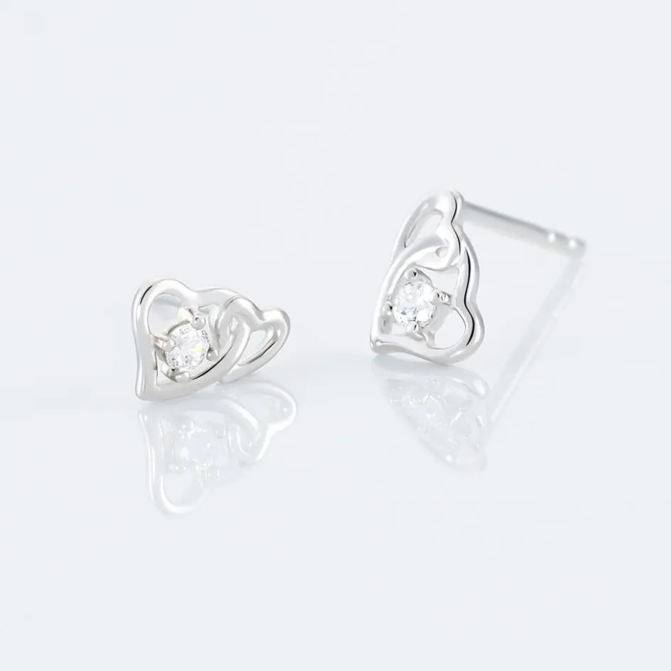 Boucles D’oreilles Argent Blanc 925/1000 Double Coeur Oxydes De Zirconium