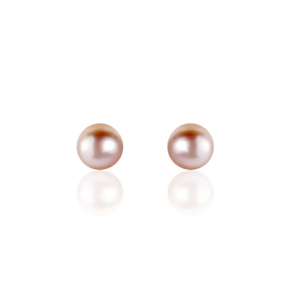 Boucles D’oreilles Or Jaune 375/1000 Perles De Culture Bouton Teintées Roses 5/5.5 Mm
