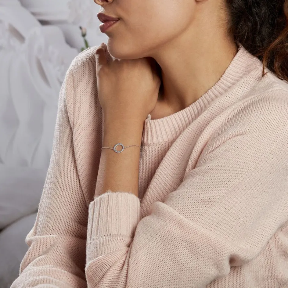 Bracelet Argent 925/1000 ambroisie Cercle Pavage Oxydes De Zirconium Bleus 18.5cm