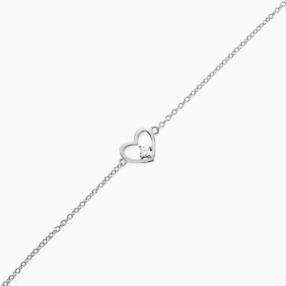 Bracelet Argent 925/1000 sabino C艙ur Sertis Griffes 1 Oxyde De Zirconium Maille Forcat 18cm