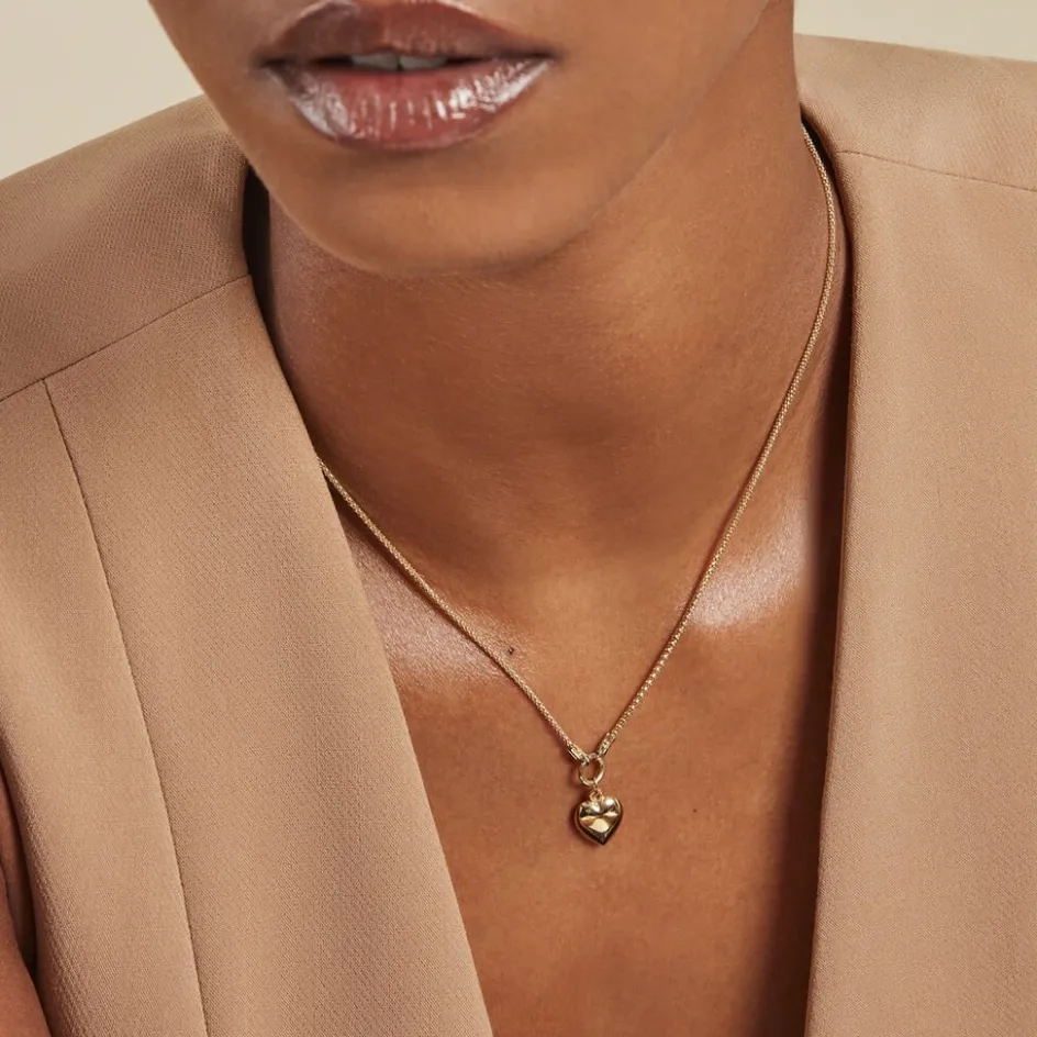 Collier Or Jaune 375/1000 C艙ur Maille Pop Corn 42cm