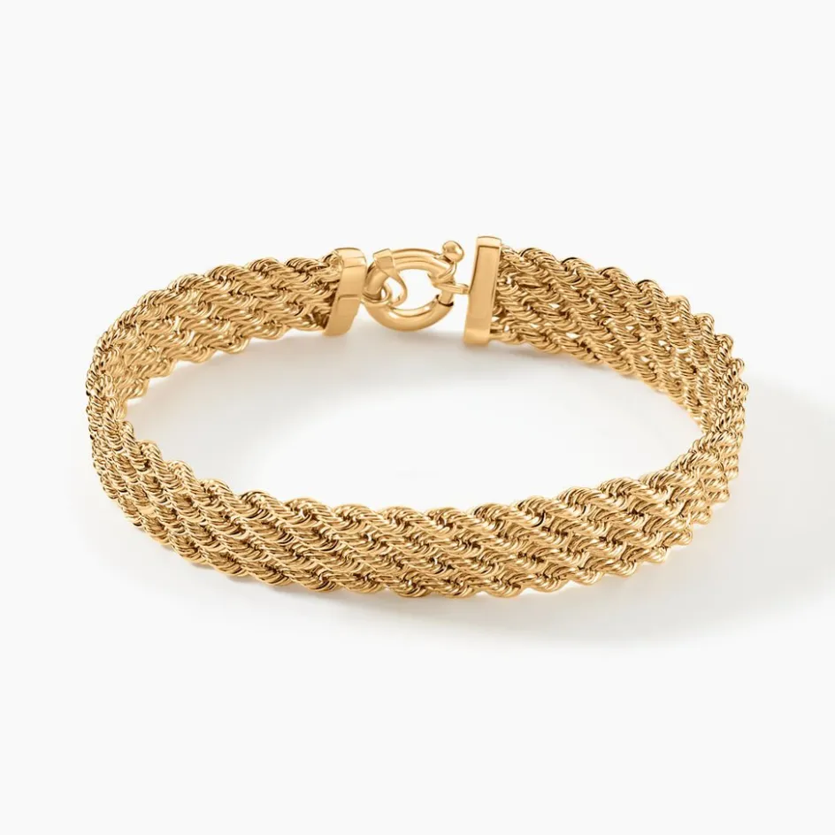 Bracelet Or Jaune 375/1000 Maille Corde 4 Rangs 3.5mm 19cm