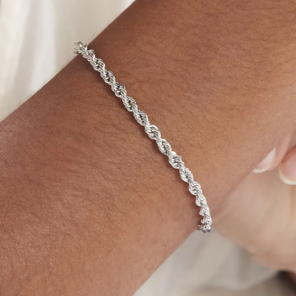 Bracelet Or Blanc 375/1000 Maille Corde 3.5mm 18cm