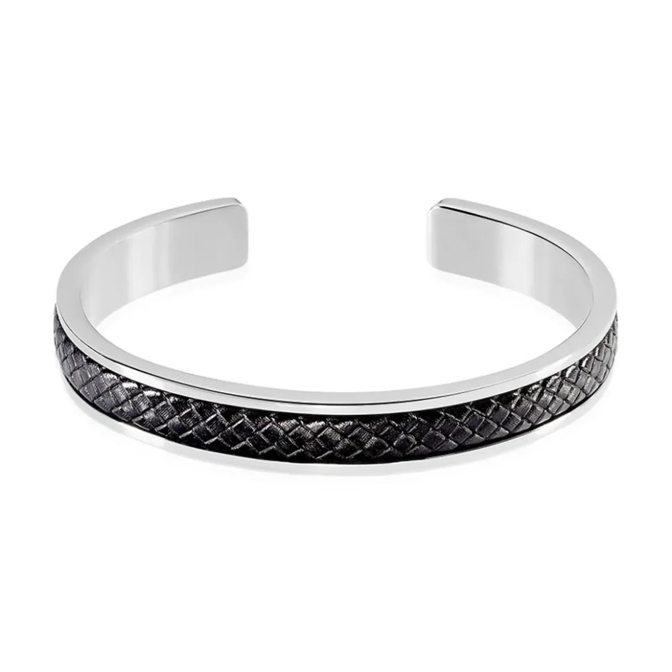Jonc Acier Cuir Noir Effet Tresse Dia 70mm