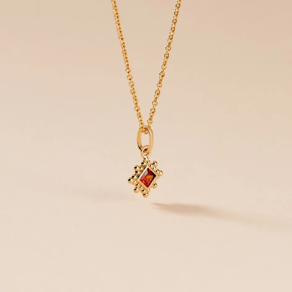Collier Plaqué Or Jaune Losange Oxyde De Zirconium Rouge Entourage Perlé Maille Forçat 45cm