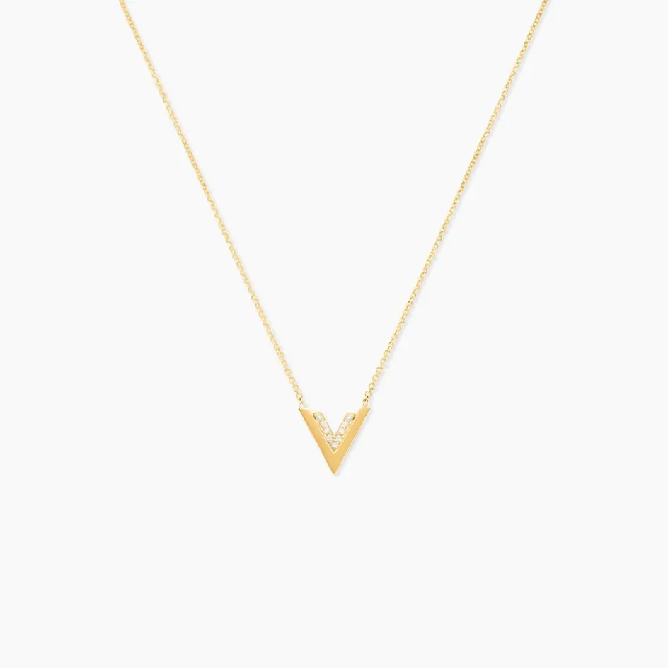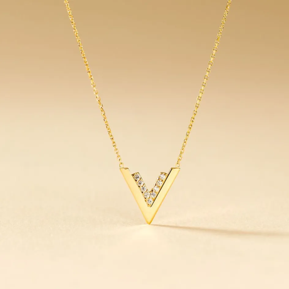 Collier Or Jaune 375/1000 Doubles V Oxydes De Zirconium 42cm