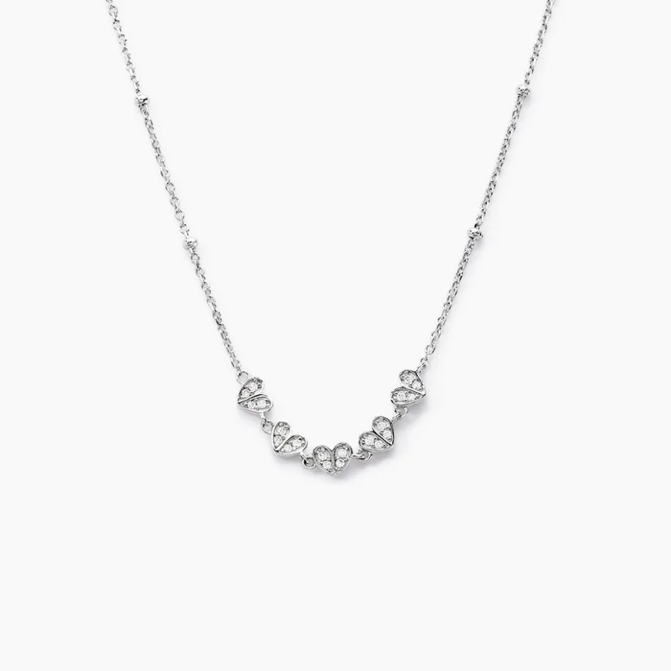 Collier Argent Blanc 925/1000 C艙urs Oxydes De Zirconium Maille Boules 42+3cm