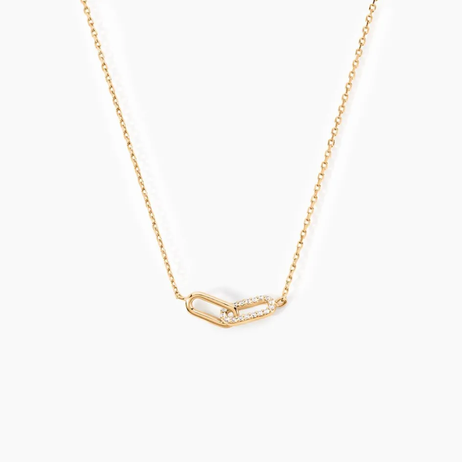 Collier Plaqué Or Jaune Maillons Rectangles Pavage Oxydes De Zirconium Maille Forcat 42+3Cm