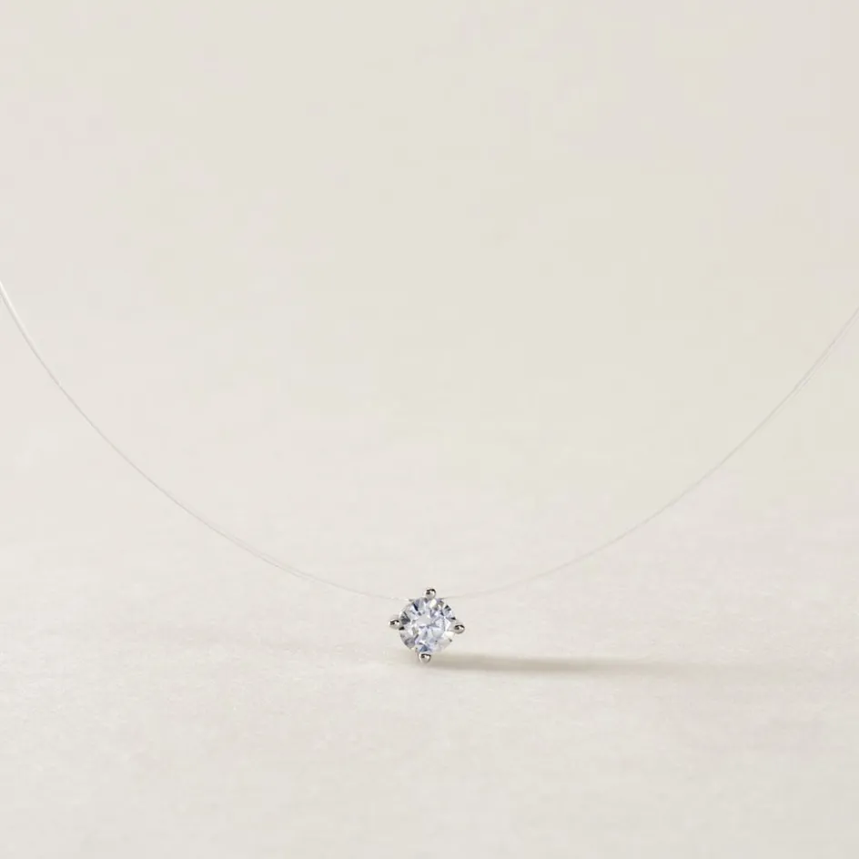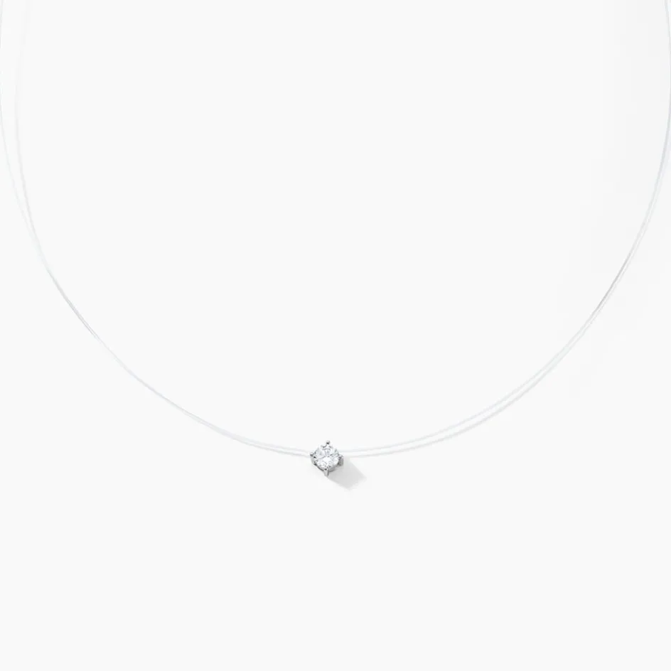 Collier Argent 925/1000 Oxyde De Zirconium Rond Serti Griffes 4mm 42cm