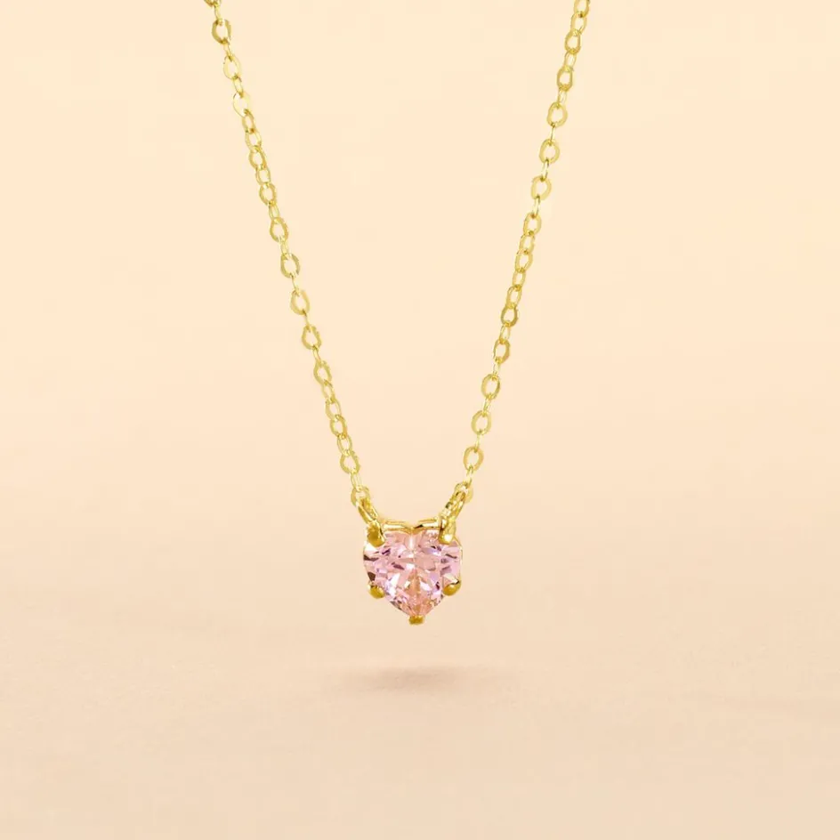 Collier Or Jaune 375/1000 Coeur Oxyde De Zirconium Rose Maille Forcat 36/38cm