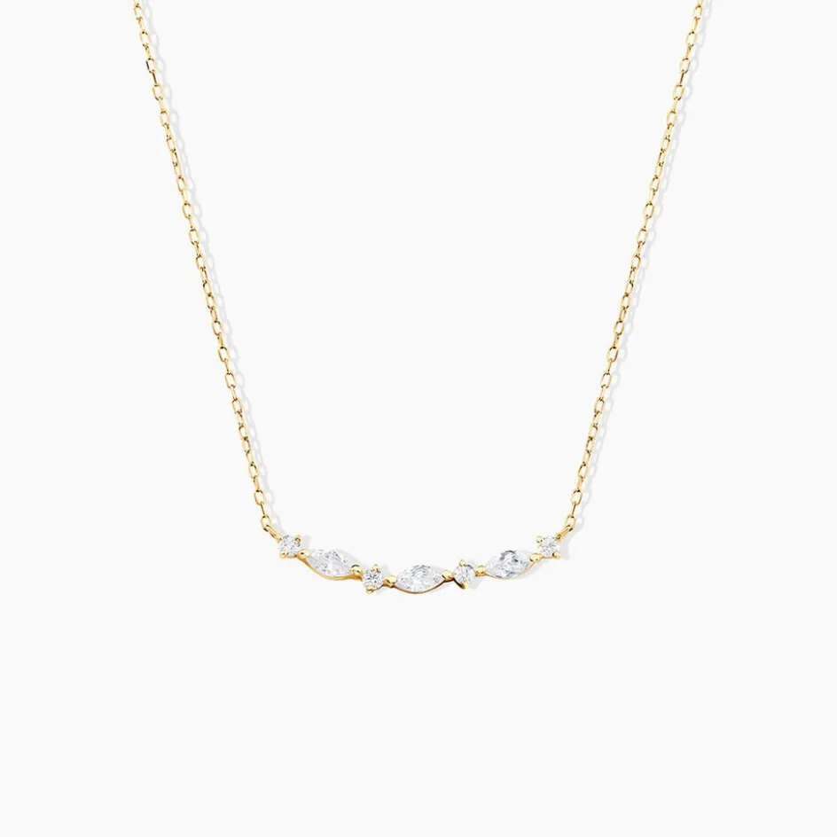 Collier Or Jaune 375/1000 Multipierre Navette Et Rond Oxyde De Zirconium Serti Griffes Maille Forcat 40+2Cm