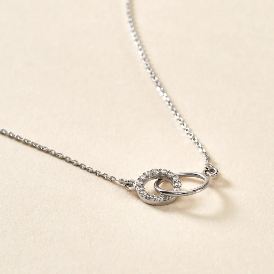 Collier Argent Blanc 925/1000 Double Cercle Ajouré Oxydes De Zirconium Maille Forçat 42+3cm