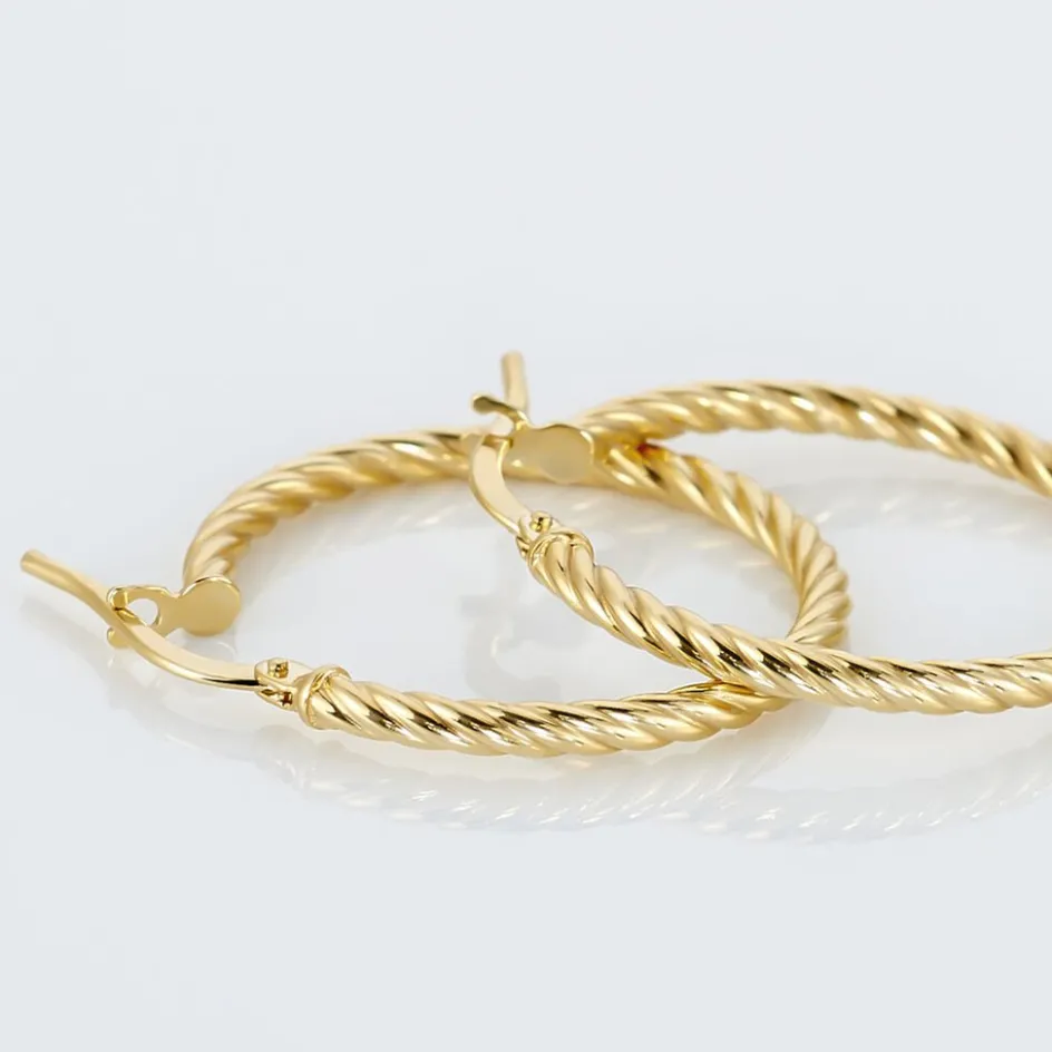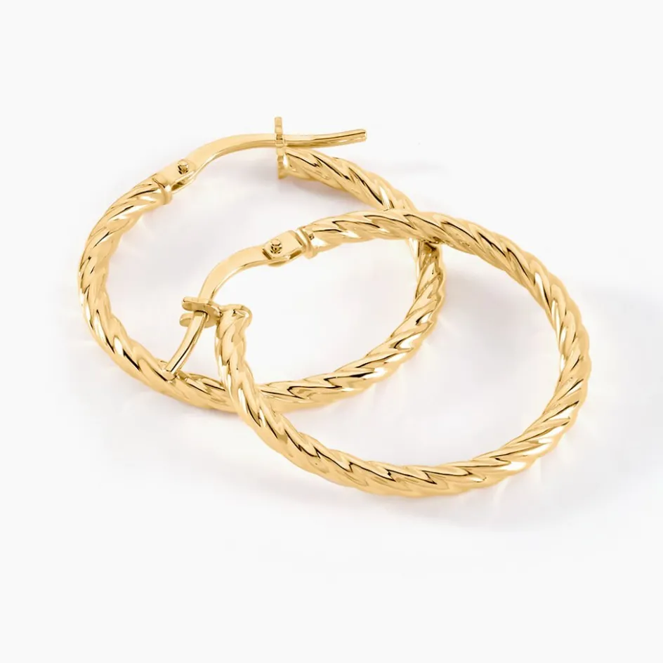 Créoles Or Jaune 375/1000 Fil Rond Torsadé Largeur 2mm Diamètre 20mm
