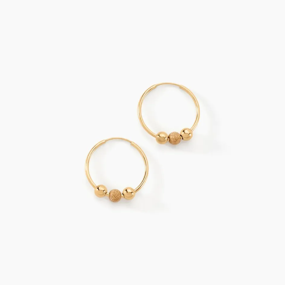 Créoles Or Jaune 375/1000 Boules Effet Lisse Et Sablé Fil Flexible Lisse Largeur 1.2mm Diamètre 20mm
