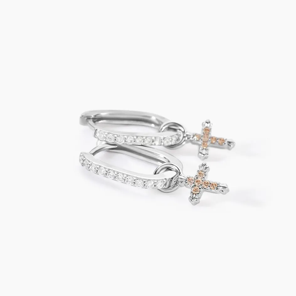 Créoles Argent Blanc 925/1000 Croix Pavage Oxydes De Zirconium Diametre 7Mm