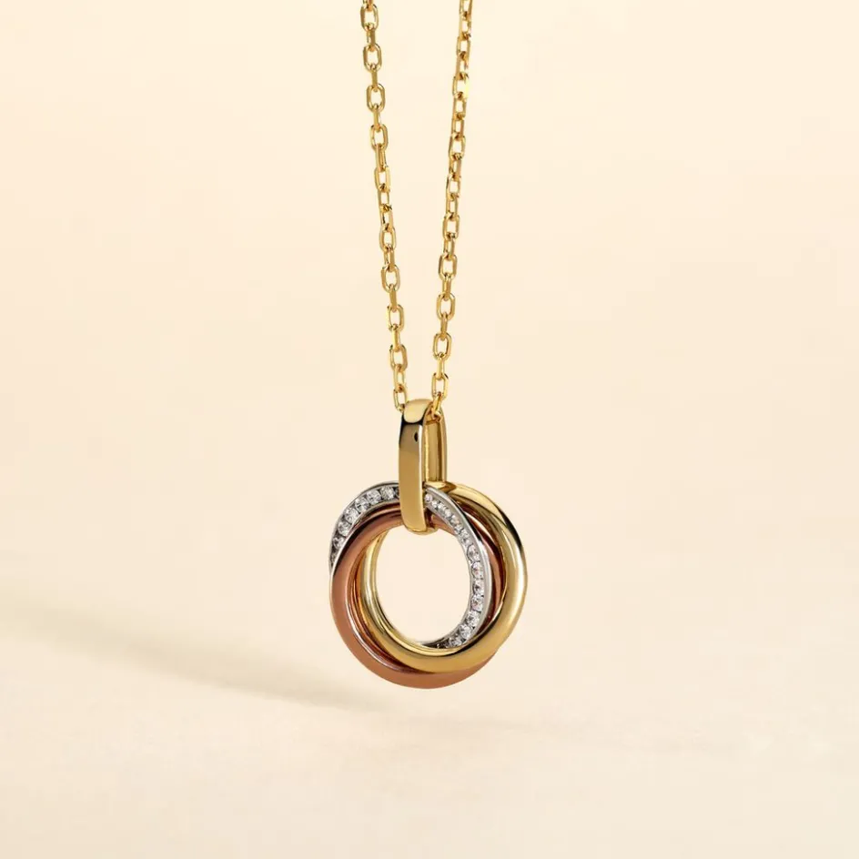 Pendentif Or Tricolore 375/1000 Cercles Et Micro Pavage Oxydes De Zirconium
