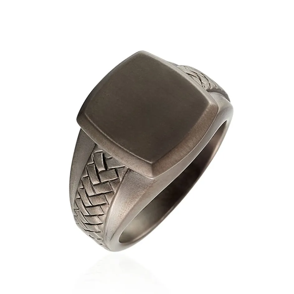 Bague Argent 925/1000 Noir Jourdan Forme Carre Plaque