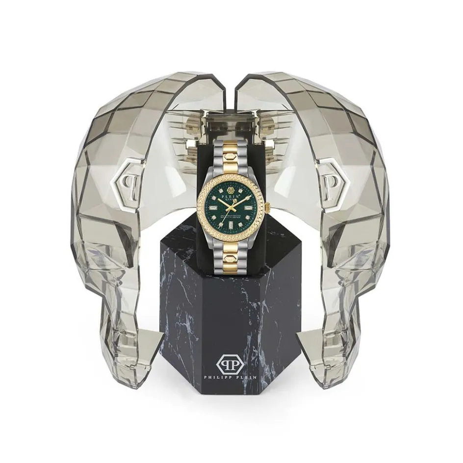 Montre Philipp Plein Queen Acier Bicolore Ronde Quartz 36mm Fond Vert Bracelet Acier Bicolore Pwdaa0421