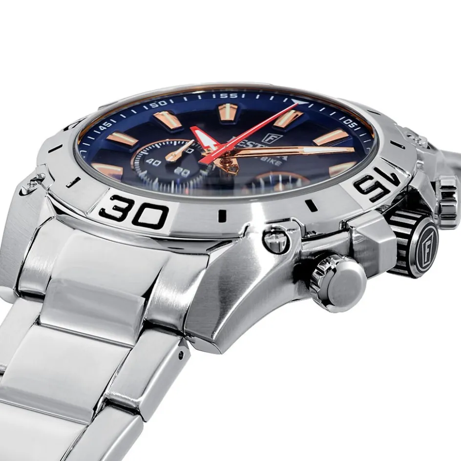 Montre Festina Chrono Bike Acier Blanc Ronde Quartz 45.5mm Fond Bleu Lunette Acier Bracelet Acier Blanc F20543/4