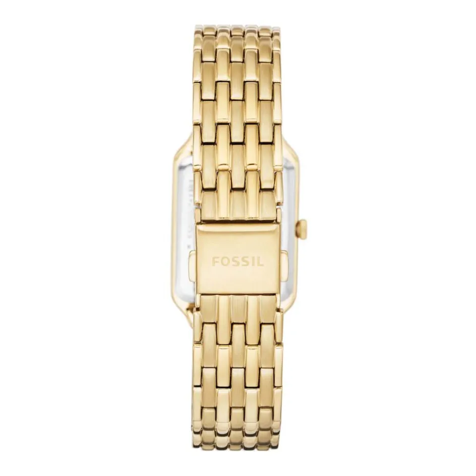 Montre Fossil Raquel Acier Doré Rectangulaire Quartz 23mm Fond Argenté Bracelet Acier Doré Es5220