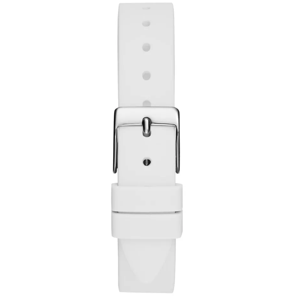Montre Guess Mini Luna Acier Argenté Ronde Quartz 30mm Lunette Dentelee Fond Argenté Bracelet Blanc Gw0724l1