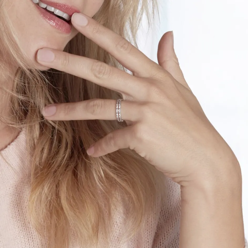 Alliance Or Blanc 375/1000 Fantaisie Ajourée 2 Rangs Diamantée 4.5mm
