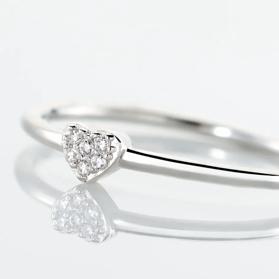 Bague Argent Blanc 925/1000 C艙ur Pavage Oxydes De Zirconium