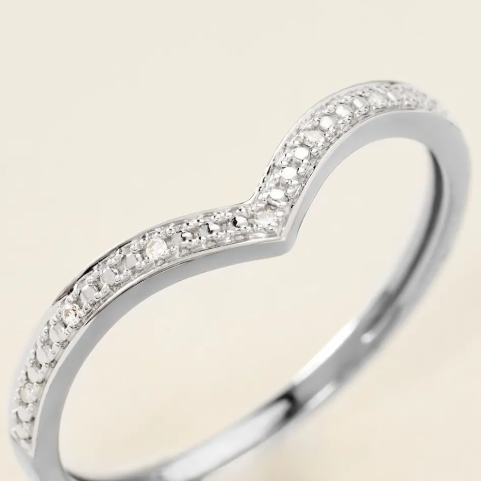 Bague Or Blanc 375/1000 Aile De Mouette Pavage Diamants Ronds