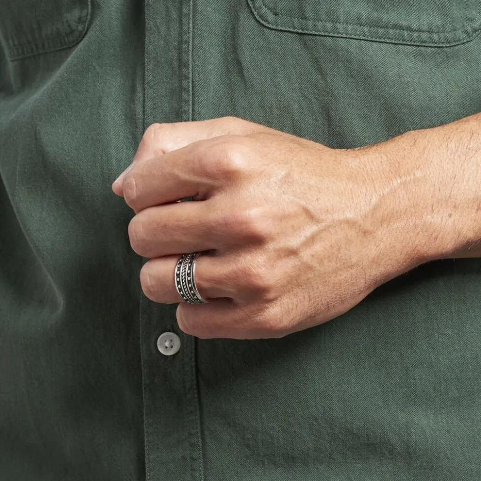 Bague Argent Blanc 925/1000 Anneau Large Motifs Pointilles Email Noir