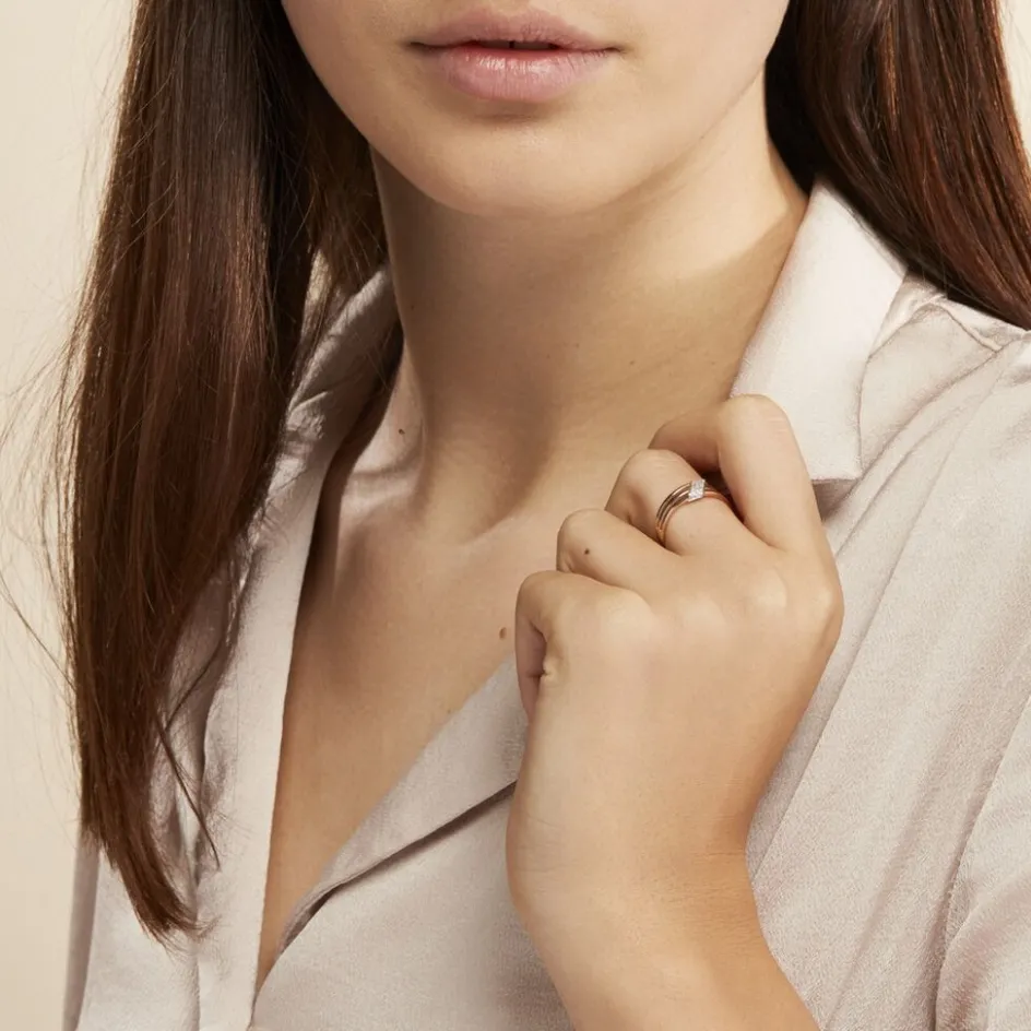 Bague Or Tricolore 375/1000 Pavage Diamants