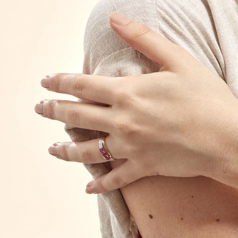 Bague Or Jaune 375/1000 Trilogie Rubis 0.72ct Serti Griffes Et Diamants