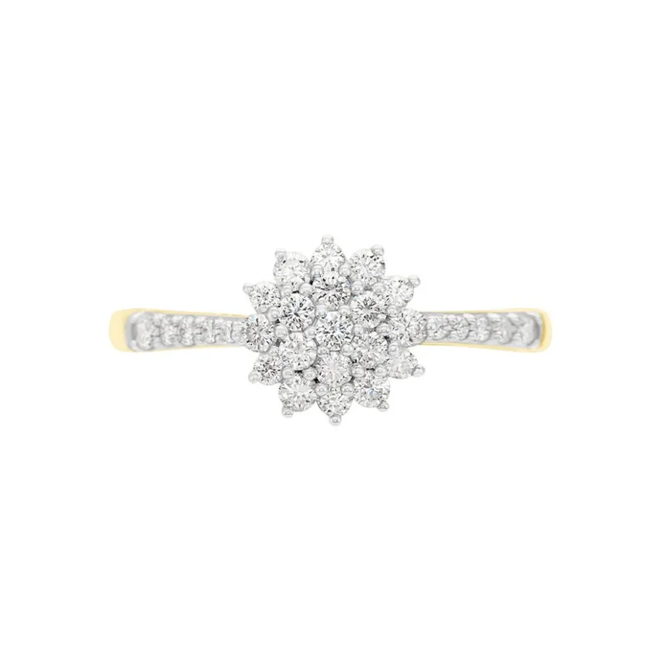 Bague Or Jaune 750/1000 Diamants Synthetiques Multipierres Forme Chou Serti Griffes 0.51cts