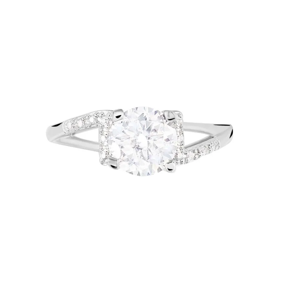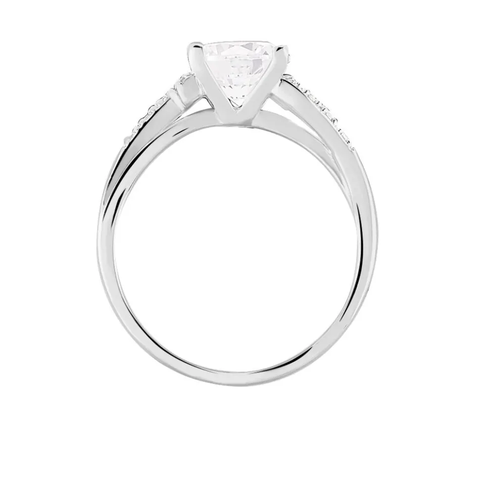 Bague Argent Blanc 925/1000 Oxyde De Zirconium Central Serti Griffes Accompagnee Oxydes