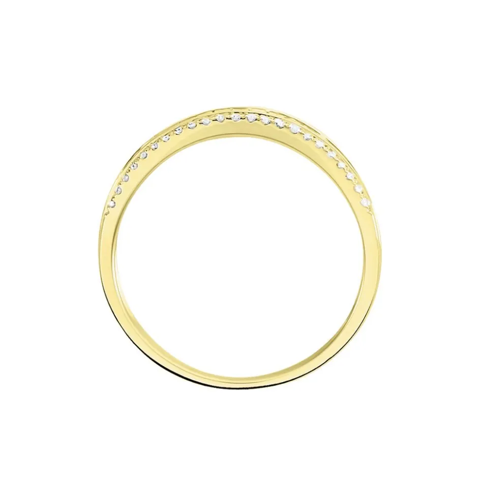 Bague Or Jaune 375/1000 Anneau Double Diamants Baguettes Et Ronds