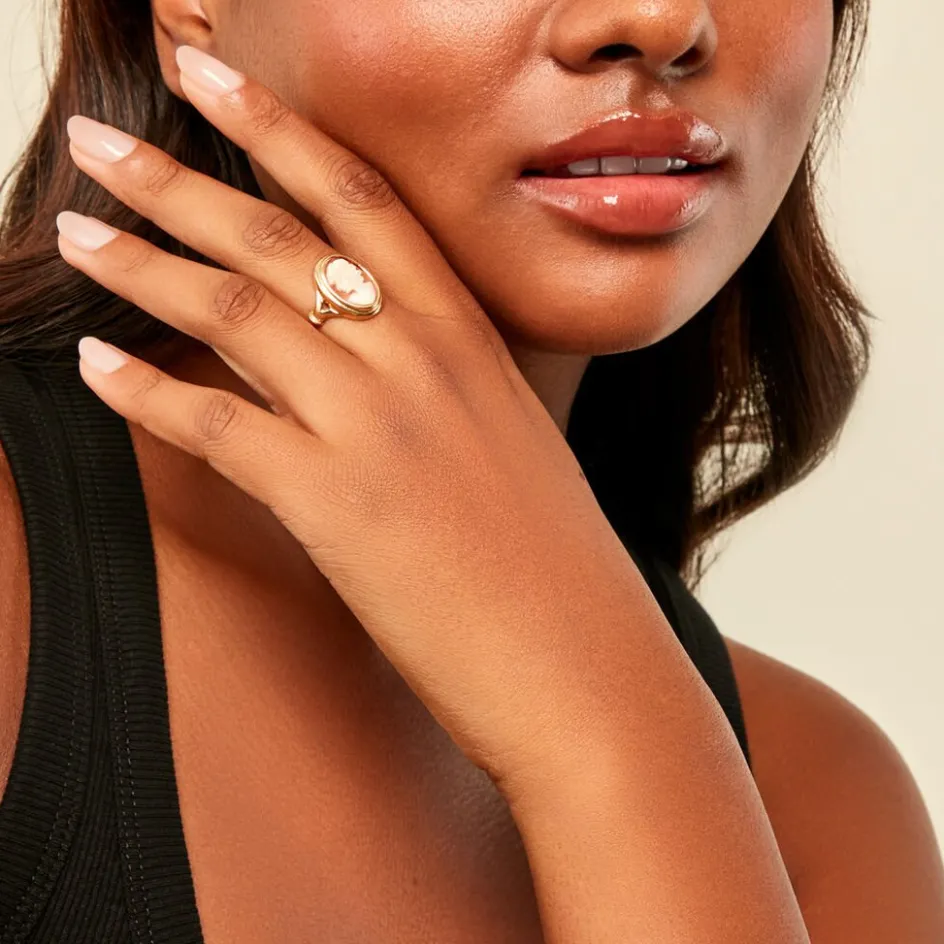 Bague Or Jaune 375/1000 Camee Oval Orange Lisse