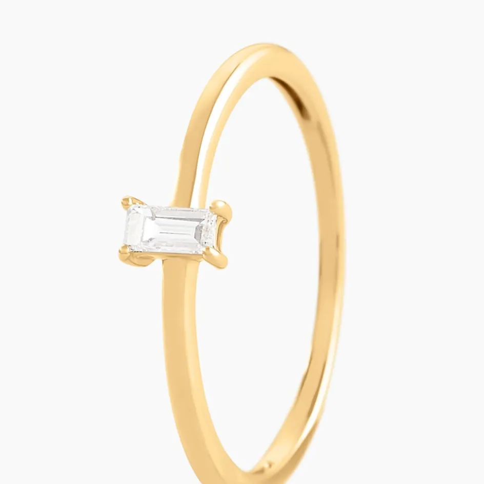 Bague Or Jaune 375/1000 Solitaire Diamant Synthetique Emeraude 0,10Cts Serti Griffes