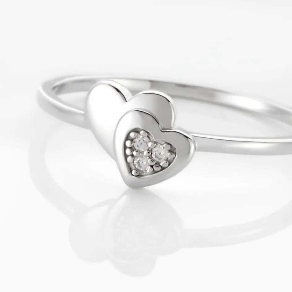 Bague Argent 925/1000 Double C艙ur Pavage Oxydes De Zirconium